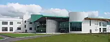 The India of Inchinnan office block was saved from its dereliction when it was bought, renovated and extended by the software company Graham Technology (now ultimately owned by Verint Systems),[3] whose headquarters were located in the category A listed building. The renovation was completed in 2003. The design by Gordon Gibb of Gibb Architects keeps the original India Tyres office building but adds a contemporary extension inspired by the airships formerly built there. The roof of the extension is a 1:1 scale replica of a section of the R34 and internal lighting spells out "R34" in morse code. The design won 'Best Re-Use of an Historic Building' at the Scottish Design Awards as well as a commendation in the 'Commercial Interior' Category. In May 2005, this was the only category A listed building in Scotland in Commercial use,[4] although that situation changed when The Wisegroup set up their headquarters at 72 Charlotte Street in Glasgow, in the Category A Listed former Lady and St Francis Secondary School [5][6]