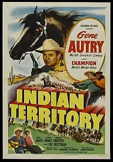 Indian Territory is a 1950 American Western film directed by John English and written by Norman S. Hall. The film stars Gene Autry, Gail Davis, Kirby Grant, James Griffith, Philip Van Zandt and G. Pat Collins. The film was released on September 30, 1950, by Columbia Pictures.[1][2][3]