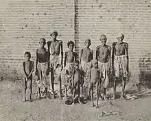 According to the Imperial Gazetteer of India, published in 1907, by the British government's India Office, overall, in British areas only, approximately one million individuals died of starvation or accompanying disease; in addition, as a result of acute shortage of fodder, cattle in the millions perished in the famine.[2] The devastation of livestock was more specifically recorded in regional official estimates. These, according to economic historian Neil Charlesworth, in western India, during the famine of 1899–1900, put cattle deaths at 2 million.[42] As, in some parts of western India, it typically took eight to ten oxen to plough and harrow the hard ground, both cultivation capacity and agricultural income were drastically reduced for many years afterward.[43] Consequently, unlike after the Great Famine of 1876–78, the population, both human and livestock, did not quickly bounce back after the famine of 1899–1900.[44] In the description of Charlesworth, "In Dholka taluk of Ahmedabad, for example, the population in 1911 was lower than at any previous census since the middle of the nineteenth century, whilst, at the other end of the Presidency, in Belgaum taluk the population of 1911 was lower by over 8,000 than that of 1891. These falls, however, were typically matched, and even exceeded, in the worst hit areas of the Deccan, by heavy decline in numbers of agricultural stock. ... The consequences of this for cultivation may have been grave."[44]