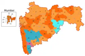 | Region | Total seats | Bharatiya Janata Party | Shiv Sena | Nationalist Congress Party | Indian National Congress | Others | ||||