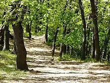 Indiana Dunes State Park is an Indiana State Park located in Porter County, Indiana, United States, 47 miles (75.6 km) east of Chicago. The park is bounded by Lake Michigan to the northwest and is surrounded by as well as within the authorized boundaries of Indiana Dunes National Park, a unit of the National Park Service; the NPS owns the water from the ordinary high water mark to 300 feet (91 m) offshore.[2] The 1,530-acre (619.2 ha) Dunes Nature Preserve makes up the bulk of eastern part of the park, and includes most of the park's hiking trails and dune landscape. This was one of the first places Richard Lieber considered when establishing the Indiana State Park system. Like all Indiana state parks, there is a fee for entrance. Indiana Dunes State Park was established in 1925 and designated a National Natural Landmark in 1974.[3]