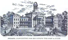 - ↑ "Indiana State Historic Architectural and Archaeological Research Database (SHAARD)" (Searchable database). Department of Natural Resources, Division of Historic Preservation and Archaeology. Retrieved August 1, 2016. Note: This includes Jess Smith and Suzanne Rollins (June 1990). "National Register of Historic Places Inventory Nomination Form: Indiana School for the Deaf" (PDF). Retrieved August 1, 2016. and Accompanying photographs