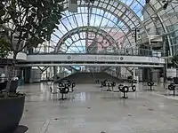 The Indianapolis Artsgarden is a glassed dome spanning the intersection of Washington and Illinois streets in downtown Indianapolis, Indiana. It serves not only as a pedestrian connector between Circle Centre Mall and nearby office buildings and hotels but also as a venue for the display and performance of artistic and musical works (more than 300 performances take place in the Artsgarden each year). In addition, the Artsgarden houses the Cultural Concierge, which provides local arts and cultural information, maps, and visitor guides.[2] The structure, including the walkways connecting it to the adjacent buildings, is owned and operated by the Arts Council of Indianapolis.