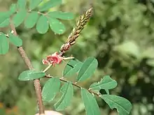 Indigofera hendecaphylla, the creeping indigo or trailing indigo, is a species of flowering plant in the family Fabaceae. It is native to the Old World Tropics and Subtropics, and has been introduced to various locales, including Japan and Australia.[1] It was widely introduced as a forage plant when it was thought to be conspecific with Indigofera spicata, and then shown to be toxic to nearly all livestock, with some uncertainty as to which species was tested.[2]