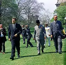 The U.S. under President John F. Kennedy intervened in the West New Guinea dispute between Indonesia and the Netherlands, due to Indonesia's purchase of Soviet arms and planned invasion of the territory. U.S. diplomat Ellsworth Bunker brokered the New York Agreement, which eventually ceded West New Guinea to Indonesia in 1969 after a controversial referendum.[19] The administration of Lyndon B. Johnson escalated the war in Vietnam, which greatly heightened tensions with Indonesia in 1964–65. Relations deteriorated further with Indonesia's opposition to the formation of Malaysia that led to war. By mid-1965, Sukarno was edging closer to China, denounced U.S. imperialism, and inspired anti-American demonstrations. Following an attempted coup on September 30, 1965, and the ensuing massacres of communists, the pro-Western Suharto came to power in 1968, and the U.S. started providing financial and military aid to Indonesia.[20][21]