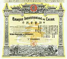 - ↑ "Banque industrielle de Chine" (PDF). Cote de la Bourse et de la banque. 7 July 1913.
