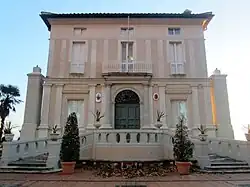 The villa is situated on the Janiculum Hill (Gianicolo) in Rome. It was designed by Giulio Romano, a student of Raphael, in 1520–1521 for Baldassare Turini. The villa provides spectacular views of the surrounding loggia.[3][4] During the seventeenth century, ownership of the villa came into the hands of Ippolito Lante Montefeltro della Rovere, Duke of Bomarzo. The Lante family was forced to sell the villa in the early nineteenth century because of financial penury. In the late nineteenth century, the villa was ownder by the German archaeologist Wolfgang Helbig. The architectural and cultural influence of Villa Lante is discernible in Castle Goring, a mansion in Sussex, England, which partially modelled on the villa.
