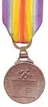 It features an ancient Greek-style Victory on the obverse, and on the reverse the circular inscription Ο ΜΕΓΑΣ ΥΠΕΡ ΤΟΥ ΠΟΛΙΤΙΣΜΟΥ ΠΟΛΕΜΟΣ 1914—1918 ('The Great War for Civilisation, 1914–1918') around the edge, and in the centre a list of the Allied nations, under the title ΣΥΜΜΑΧΟΙ ΚΑΙ ΕΤΑΙΡΟΙ ('Allies and Partners').[1] It was widely awarded to Greek military personnel that fought for at least three months, or was wounded in action, not only in the First World War, but also in the Allies' Southern Russia intervention, and the Greco-Turkish War of 1919–1922.[1]
