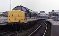 Great Western – InterCity 125s from new, which replaced Class 50s, which in turn, replaced Class 52s. Other services were also operated by Mark 2 carriages hauled by Class 47s and 50s; later these were transferred to Network SouthEast and replaced by Class 165 DMUs.