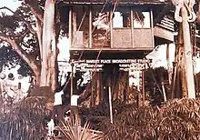 Beach was honored with a House Resolution Tourism Award in 1957.[9] He died in Hawaii in 1989.[10][11] The International Market Place had experienced almost complete turnover since its inception, and all of its buildings were finally bulldozed in 2013 after it had fallen into great disrepair. Preservationists ensured that the main banyan tree remained for the completely new International Market Place's grand reopening in 2016.[12][13] A commemorative plaque installed on the new "Don's Treehouse" reads in part: "The opening of Dagger Bar and the Bazaar Buildings in 1956 marked the establishment of Waikiki Village. Donn Beach...lived and worked in this treehouse...it was also the broadcasting home of radio personalities like J. Akuhead Pupule, who shared Hawaiian music with the world."