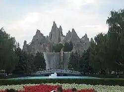 Located at the end of International Street, and considered entirely part of International Festival in the early years, Wonder Mountain appeared in the park's logo from 1981 to 2006, until Cedar Fair took ownership. Particularly in the early years, when sightlines in the park were longer, the mountain served as a navigation tool to establish one's position within the park.[7]
