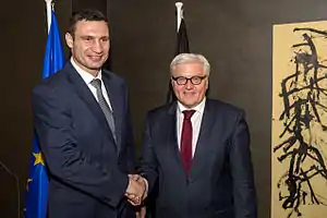 - On 4 February 2014, Steinmeier said in an interview with ARD that if the Ukrainian authorities do not find a political solution to the crisis "I think we must now show sanctions as a threat [against Ukraine]".[30]