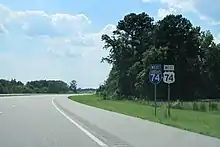 I-74/US 74 near the interchange with I-95 in Lumberton