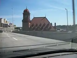Beginning in 1976, a complicated connection with the Downtown Expressway—a newer toll road built by the Richmond Metropolitan Authority (RMA)—was constructed on the bridge itself.