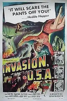 Invasion, U.S.A. (sometimes stylized Invasion USA)[3] is a 1952 American drama film based on a story by Robert Smith and Franz Spencer and directed by Alfred E. Green. The film stars Gerald Mohr, Peggie Castle and Dan O'Herlihy. Invasion, U.S.A. is set in the Cold War and portrays the invasion of the United States by an unnamed communist enemy which likely refers to the Soviet Union. It is typical of the Red Scare film genre, common throughout the 1950s.[4]
