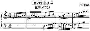 In music, an invention is a short composition (usually for a keyboard instrument) in two-part counterpoint. (Compositions in the same style as an invention but using three-part counterpoint are known as sinfonias. Some modern publishers call them "three-part inventions" to avoid confusion with symphonies.) Well-known examples are the fifteen inventions that make up the first half of Johann Sebastian Bach's Inventions and Sinfonias. Inventions are usually not performed in public, but serve as exercises for keyboard students, and as pedagogical exercises for composition students.