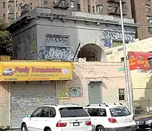 The Seaman-Drake Arch, located on Broadway at 216th Street, is one of only two free-standing arches in Manhattan, the other being the Washington Square Arch. The Seaman-Drake Arch was built in 1855 of local Inwood marble. It is the last remaining structure of the mansion that formerly stood there.[41]
