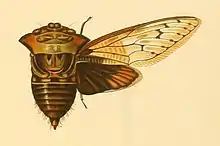 - ↑ Distant, W. L. 1912. Homoptera Fam. Cicadidae, Subfam. Cicadinae. Genera Insectorum Fasc. 142. V. Verteneuil & L. Desmet, Bruxelles