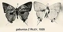 Iolaus gabunica, the Gabon sapphire, is a butterfly in the family Lycaenidae. It is found in Cameroon, Gabon, Uganda, Kenya and Zambia.[2] The habitat consists of forests.