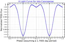 - 1 2 3 Drummond, Jack; Milster, Scott; Ryan, Patrick; Roberts, Jr., Lewis C. (2003). "ι Cassiopeiae: Orbit, Masses, and Photometry from Adaptive Optics Imaging in the I and H Bands". The Astrophysical Journal. 585 (2): 1007. Bibcode:2003ApJ...585.1007D. doi:10.1086/346224.
