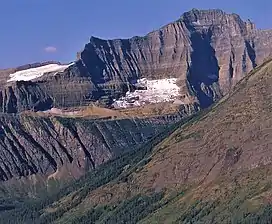 Like other mountains in Glacier National Park, it is composed of sedimentary rock laid down during the Precambrian to Jurassic periods. Formed in shallow seas, this sedimentary rock was initially uplifted beginning 170 million years ago when the Lewis Overthrust fault pushed an enormous slab of precambrian rocks 3 mi (4.8 km) thick, 50 miles (80 km) wide and 160 miles (260 km) long over younger rock of the cretaceous period.[6]