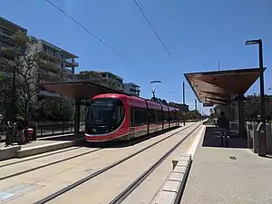 Ipima Street is a light rail station in Australia on the Canberra Metro R1 Civic to Gungahlin line, located at the intersection of Northbourne Avenue, Ipima Street and Condamine Street. It is one of two stations serving the suburbs of Turner and Braddon and sits outside a large student accommodation complex (formerly Fenner Hall, historically linked to the Australian National University). Bicycle racks are provided for commuters adjacent to the station.[1]