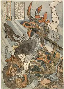 The impetus for the development of irezumi as an artform was the development of the art of woodblock printing, and the release of the popular Chinese novel Suikoden in 1757 in Japan;[4] though the novel dates back several centuries before this, 1757 marked the released of the first Japanese edition. Suikoden, a tale of rebel courage and manly bravery, was illustrated with lavish woodblock prints showing men in heroic scenes, their bodies decorated with dragons and other mythical beasts, flowers, ferocious tigers[5] and religious images. The novel was an immediate success, creating a demand for the type of tattoos seen in the woodblock illustrations.