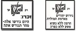 Irgun posters. Left: "Remember: Today it's them, tomorrow it's you who shall be deported". Right: "Banishment of Jews from their homeland - unpredicated disgrace, unforgivable crime".