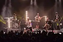 According to their own statement, Irie Révoltés aim at denouncing social ills while spreading positive energy with their music. They wants to encourage change through their socio-political engagement.[6] Amongst other things, they support the project “Respekt!”,[7] which fights against prejudice, racism, homophobia and sexism“ and are activists of “Viva con Agua de St.Pauli”, an association that works to bring clean drinking water to the “global South”. Songs as Viva con Agua and Walk with Us (ft. Gentleman) were written in order to make the concerns of the association heard. Irie Révoltés are also committed to individual actions.[8] In autumn 2009, the band appeared several times during the Bildungsstreik (student mobilization) and supported the protest together with Chaoze One offering a song for free-download. To promote the initiative “Kein Platz für Rassismus” ("No Place for Racism"), which took place in Frankfurt, Irie Révoltés have written the song Viel zu tun (There's still much to do). Focus of their social commitment is “Rollis für Afrika”, brought into being by the front man Mal Élevé in 2003 in order to help people with disabilities in Senegal. The band promotes the project organizing charity concerts, information stands and through targeted actions.[9] In spring 2012, Mal Élevé and Carlito were appointed members of the jury that first awarded the Youth Peace Prize of the German Association for the United Nations (DGVN). The prize acknowledges and promotes the engagements of young people in issues concerning the United Nations.[10]