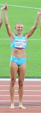 Irina Vladimirovna Karpova (née Naumenko, Russian: Ирина Владимировна Науменко; born 13 February 1980 in Kamenogorsk, East Kazakhstan Region) is a Kazakhstani heptathlete.