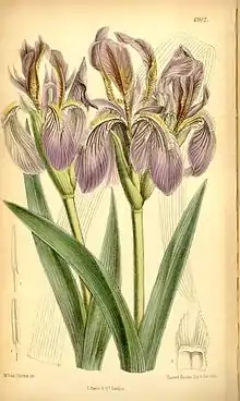 An illustration of the iris by Matilda Smith was published in Curtis's Botanical Magazine, vol. 112 [ser. 3, vol. 42] no. 6902 in 1886.[23]