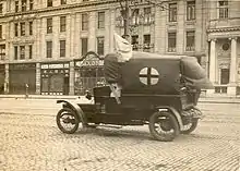 The stated reason for such attacks was that some landowners had become Free State senators. In October 1922, a deputation of Southern Unionists met W. T. Cosgrave to offer their support to the Free State and some of them had received positions in the State's Upper house or Senate.[91] Among the prominent senators whose homes were attacked were: Palmerstown House near Naas, which belonged to the Earl of Mayo, Moore Hall in Mayo, Horace Plunkett (who had helped to establish the rural co-operative schemes), and Senator Henry Guinness (which was unsuccessful).[92] Also burned was Marlfield House in Clonmel,[93] the home of Senator John Philip Bagwell, with its extensive library of historical documents. Bagwell was kidnapped and held in the Dublin Mountains, but later released when reprisals were threatened.[94][95][96]
