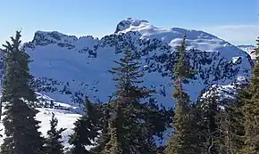 Iron Cap Mountain is a 6,347-foot (1,935-metre) mountain summit located two miles west-northwest of Dutch Miller Gap, in east King County of Washington state.[5] It is situated in the heart of the Alpine Lakes Wilderness, on land managed by Mount Baker-Snoqualmie National Forest. Iron Cap Mountain is set two miles west of the crest of the Cascade Range. Precipitation runoff from the south side of the mountain drains into tributaries of the Snoqualmie River, whereas the north side drains into tributaries of the Foss River. Although modest in elevation, relief is significant since Iron Cap rises 2,500 feet above the Middle Fork Snoqalmie River Valley in less than one mile. Its neighbors include La Bohn Peak, 1.77 miles (2.85 km) to the east, and Little Big Chief Mountain, 2.14 miles (3.44 km) to the southeast.[1]