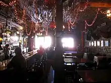 The interior has the typical decor of an old saloon, with the original bar intact. The ceiling is adorned with dollar bills and historical artifacts. Live music is offered on the weekends.[1][2]