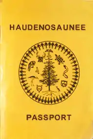 The Iroquois or Haudenosaunee passport is a form of identification and an "expression of sovereignty"[1] used by the nationals of the Six Nations (Iroquois: Haudenosaunee).