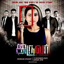 Iruvar is a 2016 Singaporean-Tamil-language mystery soap opera starring Indra, Gayathri Segaran, Vishnu, Varman, Jabu and Balakumaran. The first one-hour episode was aired on 11 December 2016.[1][2] It replaced Azhagiya Thamizh Magal and it broadcast on MediaCorp Vasantham from 11 December 2016, to 29 March 2017 for 62 episodes. The show's final one-hour episode aired Wednesday 29 March 2017.