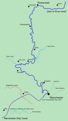 - ↑ APEM Aquatic Scientists (October 2004). "Urban Regeneration in Manchester: Transforming the "Dark River Irwell"" (PDF). Mersey Basin Campaign. Environment Agency. p. 5. Retrieved 4 April 2015.