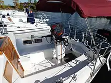 The design was factory-fitted with a Japanese Yanmar diesel engine of 15 hp (11 kW) for docking and maneuvering. The fuel tank holds 30 U.S. gallons (110 L; 25 imp gal) and the fresh water tank has a capacity of 75 U.S. gallons (280 L; 62 imp gal).[1]