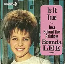 "Is It True" is a song released in 1964 by Brenda Lee. In 1964, Brenda Lee was flown by Decca to England to cut a single record, initially conceived for release exclusively in the United Kingdom, but it was in fact also released in the US shortly after release in the UK. "Is It True" was written by John Carter and Ken Lewis, then two of England's top songwriters.[3]