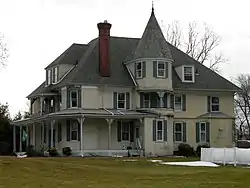 Built circa 1900, this historic structure is a two-story, seven-bay, frame dwelling with a slate-covered hipped roof which was designed in the Queen Anne style. It features a large, steep, conical turret, two-story, bay window, and two-story hipped roof portico porch. Its builder also built the Harry DeHaven House across the street.[2]