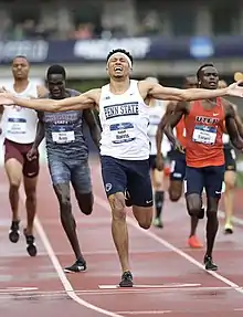 ![]() Harris winning the 800 meters at the 2018 NCAA Division I Outdoor Track and Field Championships | |