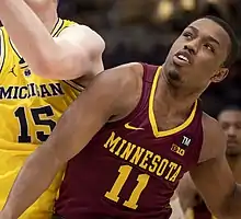 On November 10, 2017, Washington made his collegiate debut, recording four points and five assists on 1-of-9 shooting for Minnesota in a 92–77 victory over USC Upstate.[11] On February 3, 2018, he scored a career-high 26 points in a 76–73 overtime loss to Michigan. It was the highest-scoring performance by a Minnesota freshman in Big Ten Conference play since Kris Humphries in 2004. He was subsequently named Big Ten freshman of the week.[12] As a freshman, Washington played 32 games and averaged 8.7 points, 2.6 rebounds and 2.3 assists per game, shooting 36.6 percent from the field.[13] On December 11, 2018, during his sophomore season, he posted his first double-double, with 14 points and a career-high 13 assists in an 80–71 win over North Florida. Washington averaged 4.3 points and 2.8 assists on 31.1 percent shooting as a sophomore and received less playing time due to the emergence of Gabe Kalscheur.[14][15]