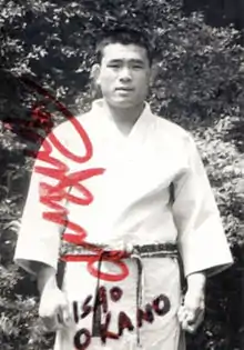 Okano entered the 1964 Summer Olympics while studying at Chuo University's law school, and won the gold medal in the middleweight division. He won another gold medal at the World Judo Championships in 1965, becoming the champion of his division at only 21 years of age. He also won the open-weight class division of the All-Japan Judo Championships in 1967 and 1969, and placed second in 1968. At 80 kg, he and Shinobu Sekine remain the lightest ever competitors to win these championships.[1] Okano suddenly retired from competitive judo at only 25 years of age, and founded the Sekijuku (currently the Ryutsu Keizai University's judo team) in 1970, where he instructed future Olympic gold medalist Kazuhiro Ninomiya. He also served as a coach for the Japanese team during the 1976 Summer Olympics. He later worked as a judo instructor at Keio University from 1989 to 1998, and the University of Tokyo from 1989 to 2000. He is a retired professor and Head of the Judo Department at Ryutsu Keizai University. He has held the judo rank of 6th dan for more than 40 years. Isao Okano is the author of Vital Judo,[2] which was published in 1976. Okano is famously known for his seoinage, kouchi gari and osoto gari.[3]
