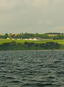 The coastline of Isgård to the south and the east consists of steep, often eroding, slopes down to the sea with a walkable beach, where the tidal difference is normally less than one foot.[5] The hilly moraine deposits in the area are dominated by different types of clay with spots of sandy material in between.[3]