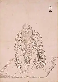 • Ishūretsuzō funpon (夷酋列像粉本) — two sets of preparatory sketches on paper, comprising: (a) thirteen sheets, nine of which are understood to be in the hand of Kakizaki Hakyō (those above of Mautarake, Tsukinoe, Shonko, Ikotoi, Ininkari, Nochikusa, Poroya, Nishikomake, and Chikiriashikai),[13] with two different versions of Ininkari and three different versions of Tsukinoe, but lacking portraits of Ikorikayani and Shimochi, and with that of Chousama understood not to be Kakizaki Hakyō;[13] in Hakodate City Central Library and designated a Prefectural Tangible Cultural Property;[13][14] (b) three sheets, featuring Chousama, an early draft of Ikotoi, and another early draft of Tsukinoe, in a private collection[1]:47