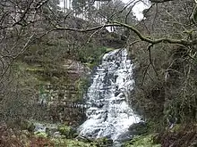 This stunning waterfall can be reached by following the John Muir trail past the Burncrooks reservoir and through the forest. Venture off the John Muir trail along a red coloured forest path on the left just before you reach trees on either side of the path. At the bottom of this path is the burn that feeds the falls. Follow the fence line until you reach a style, cross over the style and the falls are at the bottom of the hill. GPS location for google maps 56°00'05.1"N 4°28'56.4"W