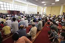The society purchased a lot on Johnnycake Road by the late 1970s,[1] where Masjid Al-Rahmah was constructed from 1982–83.[4][10] The mosque was built with a capacity of around 180 people, but held around 300 people during Friday prayers.[11] In 1985, the society's mostly foreign-born membership had around 475 families.[12] In 1987, a gymnasium was built, and a full-time K–12 school, Al-Rahmah School, was established with 27 students in its first year.[13][11] The campus also includes a housing complex.[14] The Al-Rahmah Quran Academy was opened in 1999–2000 by Qari Muhammad Zahid,[15] initially having one student.[4]