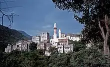 The Ziyadids were replaced in the Tihama lowlands by the Najahid dynasty, established in 1022 by two Black African slave brothers, Najah and Nafis.[19] Najah quickly sidelined his brother, and secured recognition from the Abbasid caliph.[19] However, their territory was smaller than that of the Ziyadids, being limited to the Tihama, and their history was rather chequered. In 1060, the highland Sulayhid dynasty conquered their lands for twenty years, and it was only after a prolonged struggle that in 1089 that a new Najahid ruler, Jayyash, established his power firmly over Zabid and its territory.[38] Jayyash founded the city of Hais, which he settled with his kinsfolk from Abyssinia.[39]