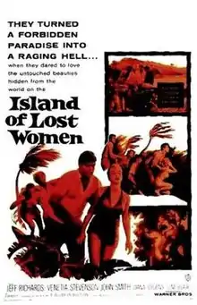 Island of Lost Women is a 1959 American independently made black-and-white castaways melodrama film, produced by George C. Bertholon, Albert J. Cohen, and Alan Ladd, that was directed by Frank Tuttle and released by Warner Bros. Pictures. The film stars Jeff Richards, Venetia Stevenson, John Smith, Alan Napier, Diane Jergens, and June Blair.[1] The film's storyline borrows details from Shakespeare's The Tempest and more contemporaneously the 1956 science fiction film Forbidden Planet.