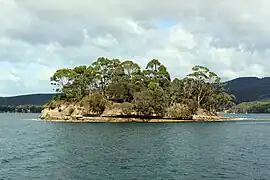 Isle of the Dead is an island, about 1 hectare (2.5 acres) in area, adjacent to Port Arthur, Tasmania, Australia. It is historically significant since it retains an Aboriginal coastal shell midden, one of the first recorded sea-level benchmarks, and one of the few preserved Australian convict-period burial grounds.[3][4] The Isle of the Dead occupies part of the Port Arthur Historic Site,[5] is part of Australian Convict Sites and is listed as a World Heritage Property because it represents convictism in the era of British colonisation.[6][7]